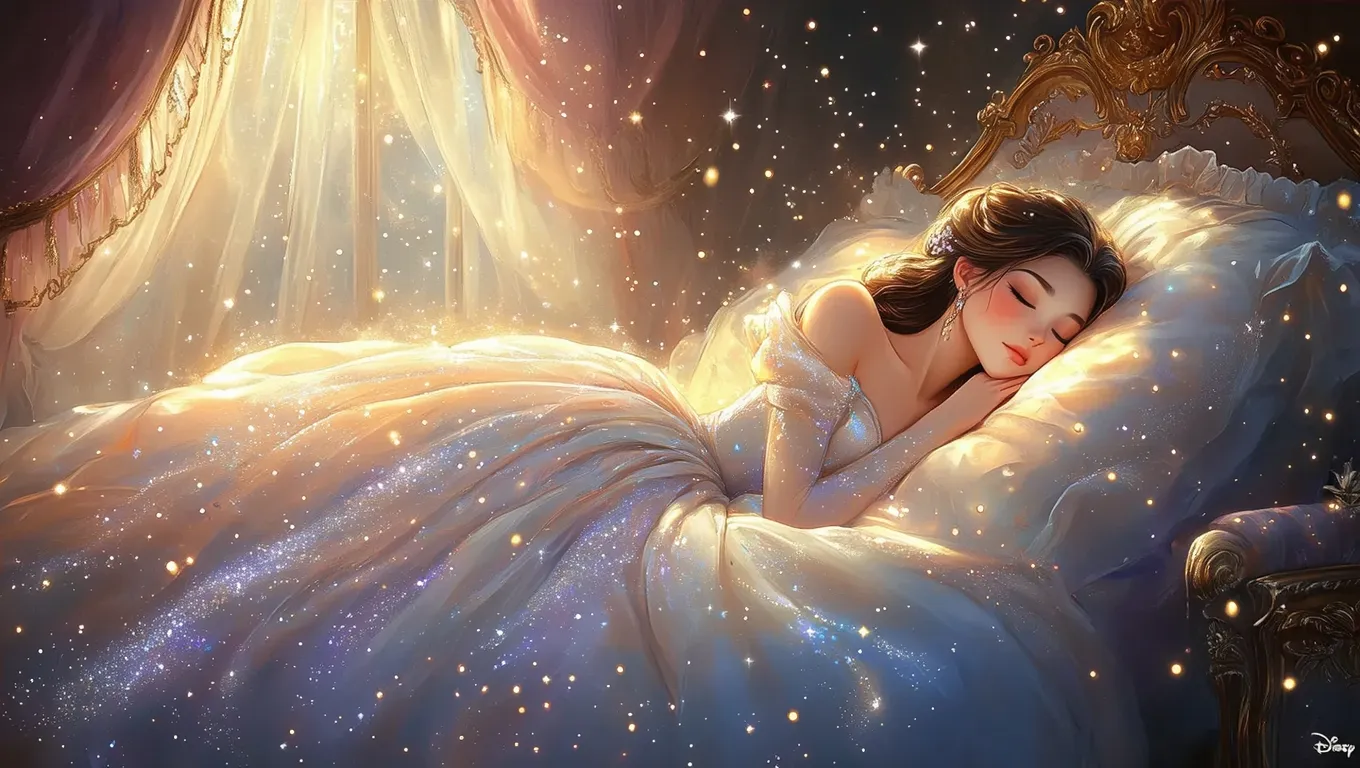 Transform text into enchanting visuals with this Baroque oil painting meets 90s anime aesthetic. Featuring a Disney-style princess in a royal bed, magical stardust gown, ethereal moonlight glow, and sparkling particles. Combines expressive eyes, soft gradients, intricate Baroque details, and clean anime lineart for a mesmerizing fantasy scene rich in color, delicate fabrics, and dreamy atmosphere.