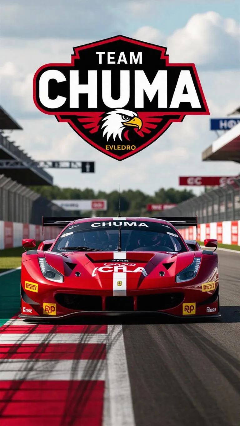 Generate a dynamic AI-powered racing car design with vibrant red livery for Team CHUMA, featuring a bold hawk logo. Elevate branding and speed aesthetics with high-speed visuals using Vivago.ai's creative tools. Perfect for motorsport enthusiasts seeking professional-grade AI-generated vehicles and emblem designs. Create stunning motorsport artwork effortlessly.