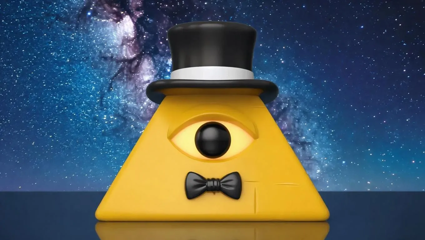 Craft a quirky AI-generated Funko Pop figure of a yellow pyramid with a single eye, black top hat, and bow tie. Perfect for surreal collectibles and unique 3D model designs using Vivago.ai's creative AI tools for eye-catching, customizable character art.