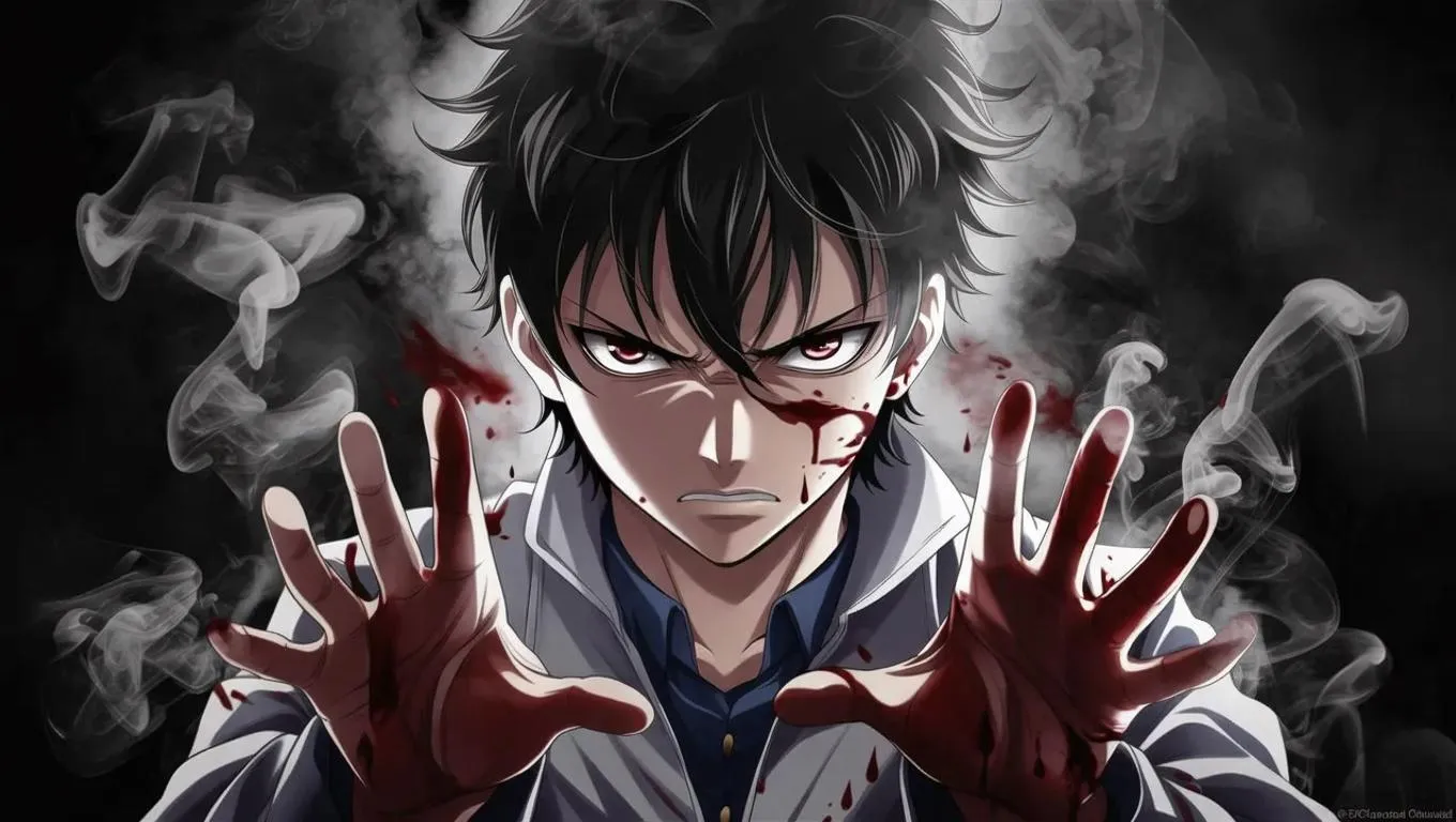 Create an intense anime-style character with a dark, smoky backdrop and blood-stained hands. AI-powered tools capture serious anger and dramatic storytelling visuals. Ideal for edgy art projects, transforming text prompts into vivid, expressive imagery with professional-grade precision.