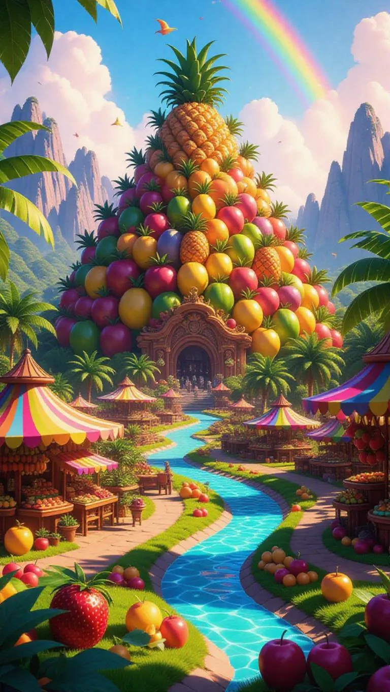 Immerse in a whimsical fruit kingdom with vivago.ai's AI-generated watercolor art. Vibrant fruit mountains, juice rivers, and candy rainbows blend with playful peach rabbits and banana monkeys. Craft dreamy, magical scenes in charming watercolor style—soft brushstrokes, transparent hues, and cheerful colors. Ideal for enchanting visuals, creative storytelling, and professional-grade AI-powered imagination.