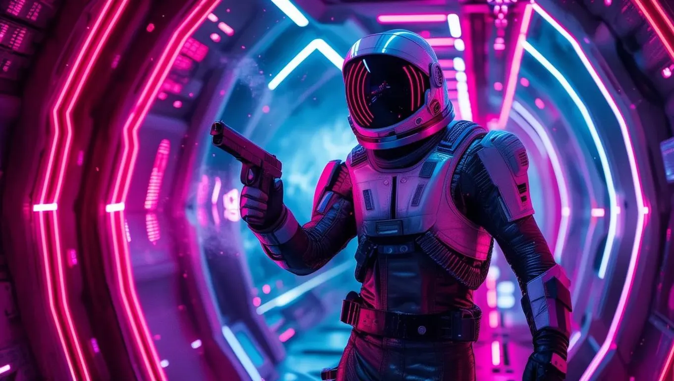 Generate thrilling space heist visuals with Vivago.ai's AI tools. Transform text prompts into dynamic scenes of futuristic bank robberies in zero-gravity environments, featuring interstellar criminals, high-tech vaults, and cosmic escapes. Ideal for sci-fi storytelling, concept art, or video projects using advanced text-to-image AI technology.