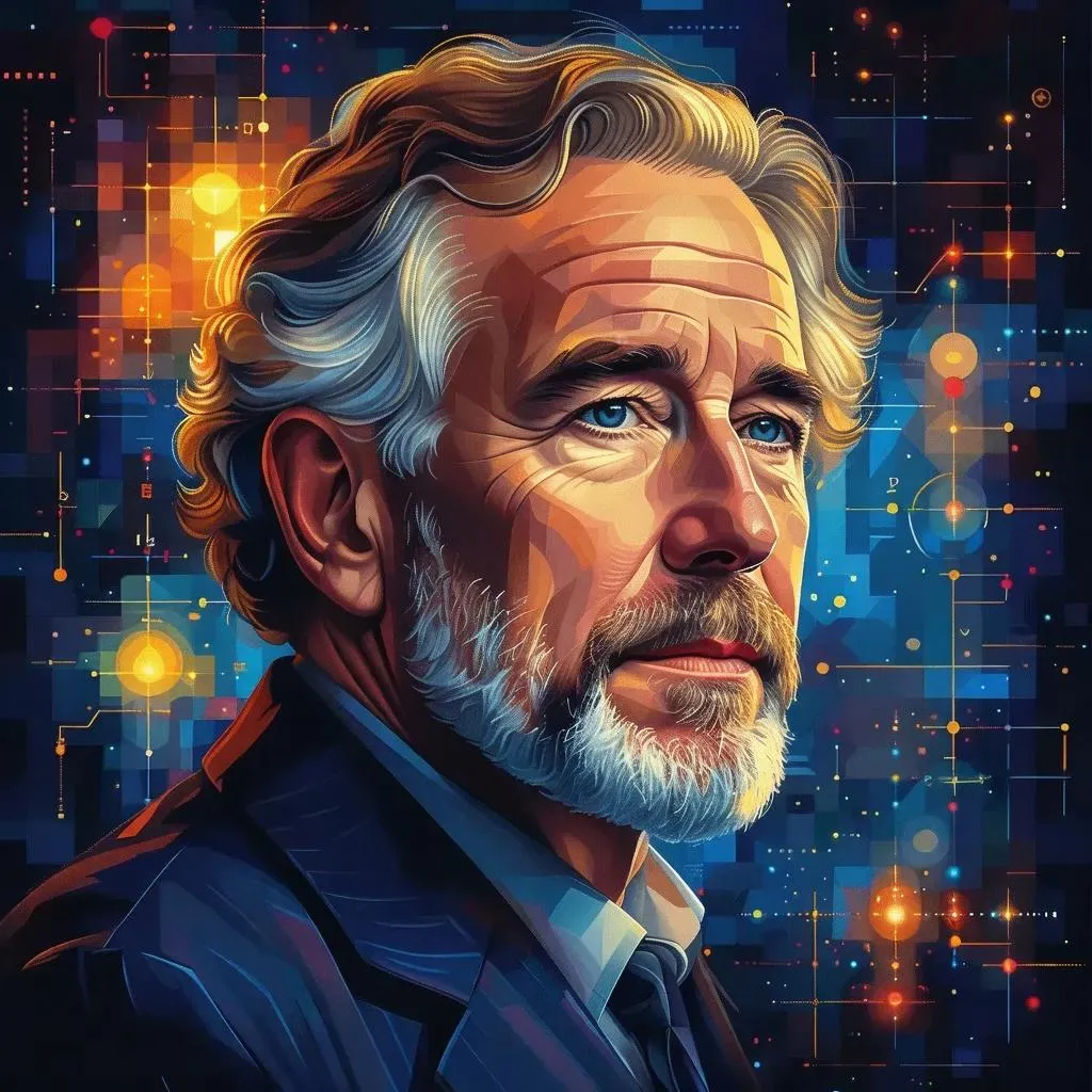 Generate an AI portrait of John Conway, cellular automaton pioneer and Game of Life creator. Honor his legacy with vivago.ai's AI image tools, transforming text prompts into dynamic visual tributes with professional-grade effects.