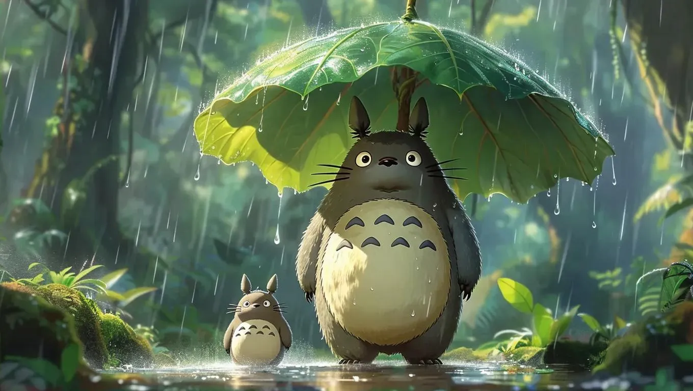Create enchanting Studio Ghibli-inspired AI art with Vivago.ai. Generate a heartwarming scene of Totoro shielding a smaller companion under a leafy umbrella in a lush rainforest. Perfect for anime fans, this AI-generated artwork blends furry textures, panoramic outdoor lighting, and Miyazaki’s whimsical charm. Elevate your visuals with our AI tools for vibrant, professional-grade animations and effects.