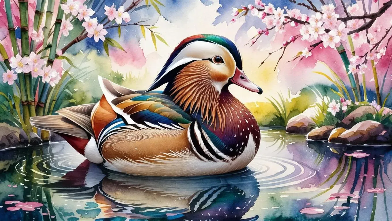 Create vibrant AI-generated mandarin duck paintings with vivago.ai. Transform text prompts into detailed, colorful artwork showcasing symbolic love and beauty. Leverage AI tools for lifelike feather textures, dynamic compositions, and artistic styles. Ideal for digital artists, designers, and nature-inspired projects seeking professional-grade visual creations.