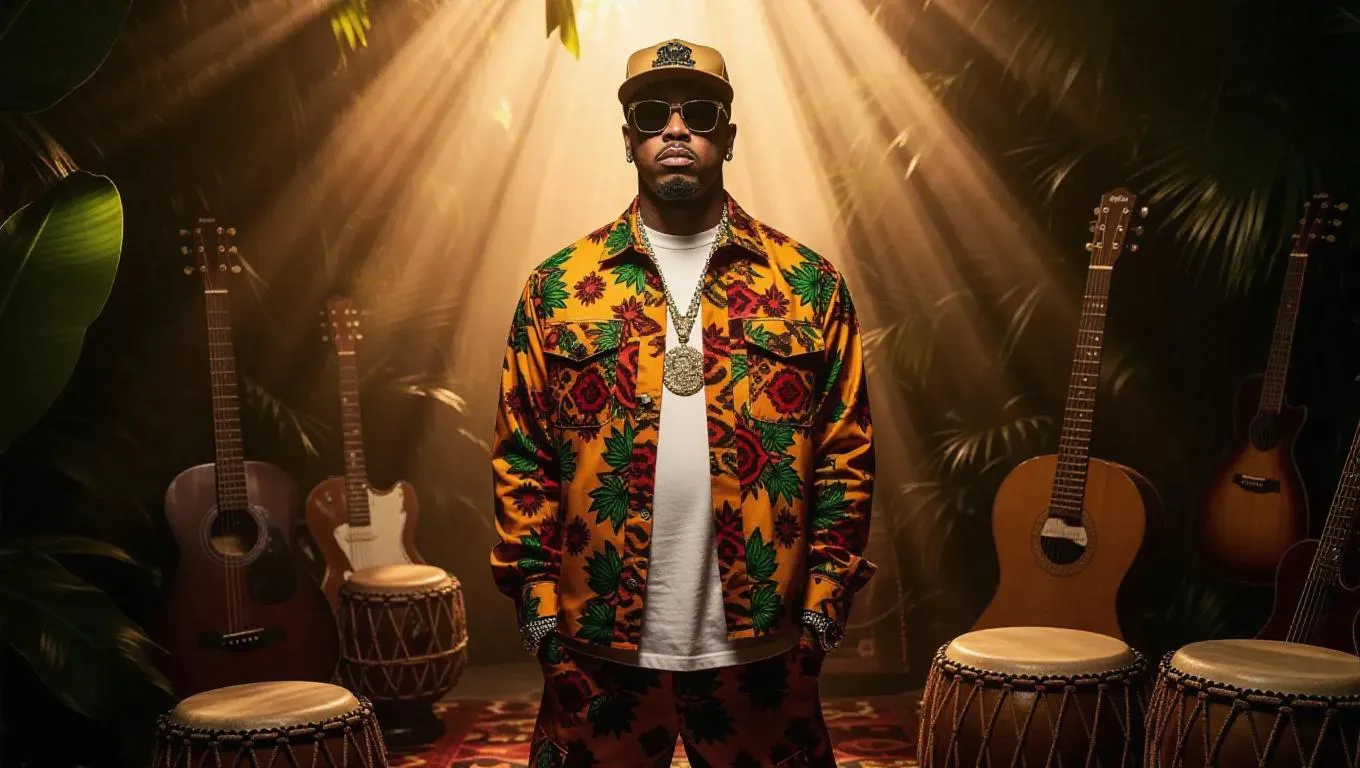 Transform text into AI-generated visuals of futuristic rappers blending African heritage with neon-lit streetwear, holographic elements, and Afrofuturism aesthetics. Create bold, culturally rich AI art or videos with vivago.ai's tools for dynamic, professional-grade edits. Redefine music artistry through Afrocentric futurism, AI effects, and cutting-edge style fusion.