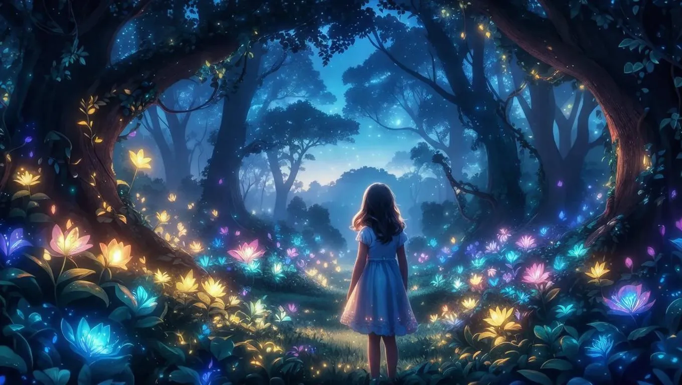 Generate a captivating AI image of a young girl in a magical forest at twilight. Experience ethereal glow, vivid colors, and enchanting details with Vivago.ai's advanced AI tools. Transform text prompts into stunning visuals for fantasy scenes, storytelling, and digital art projects. Explore limitless creativity with professional-grade AI effects.