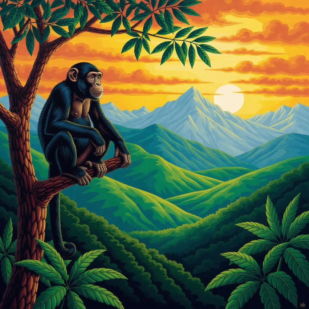 Transform your text into vivid visuals with vivago.ai's AI image generator. Depict a playful monkey perched on a tree amidst lush green grasslands and distant mountains. Explore AI-powered tools for stunning wildlife art and serene landscapes. Create now!