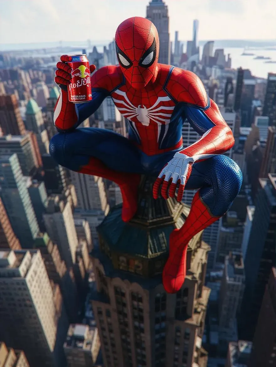 Generate AI-powered Spider-Man art with dynamic shadows and superhero physique details. Explore Red Bull-inspired cityscape poses, abstract fiber optic Pyrenees aesthetics, and photorealism blending James Jean and Andy Kehoe styles. Create muscular superhero photography, perfect proportions, and confident stance visuals using Vivago.ai's AI image tools.