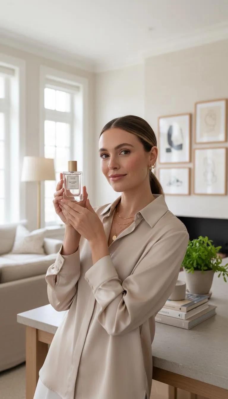 Create realistic Instagram-style lifestyle photos with vivago.ai. Transform perfume products into elegant influencer ads featuring a female model in natural home settings. Generate high-end visuals with deep depth of field, crisp textures, natural lighting, and readable labels—no studio backdrops or text. Perfect AI image generation for authentic product visualization.