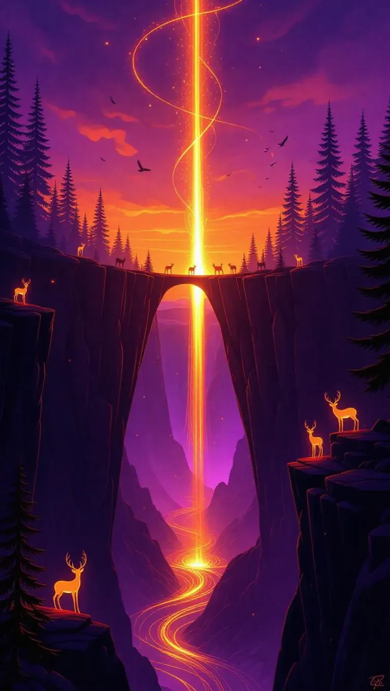 Experience AI-generated surreal art with "Fire Waterfall — Inverted Nature." A fiery cascade defies gravity in a twilight canyon, surrounded by glowing inverted trees and ethereal creatures. Magical realism meets vibrant ember tones, ancient symbols, and dreamlike wonder. Crafted with Vivago.ai's advanced AI tools for mesmerizing, ultra-detailed fantasy visuals.