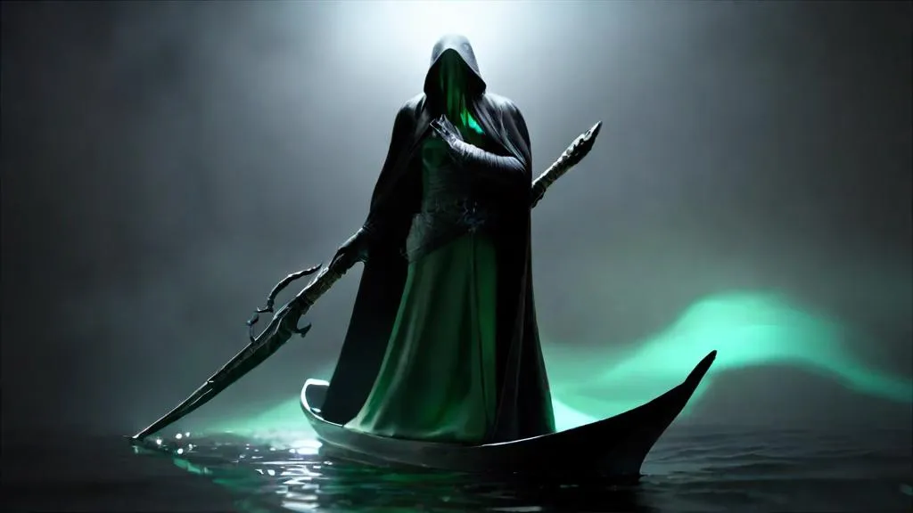 Unleash the eerie Black Shadow effect with VivaGo AI. Craft haunting visuals of a spectral figure in a long black coat, glowing green eyes, and clawed arms atop a boat in a dark, misty sea. Elevate horror-themed projects with AI-generated atmosphere and professional-grade editing tools for spine-chilling, cinematic results.