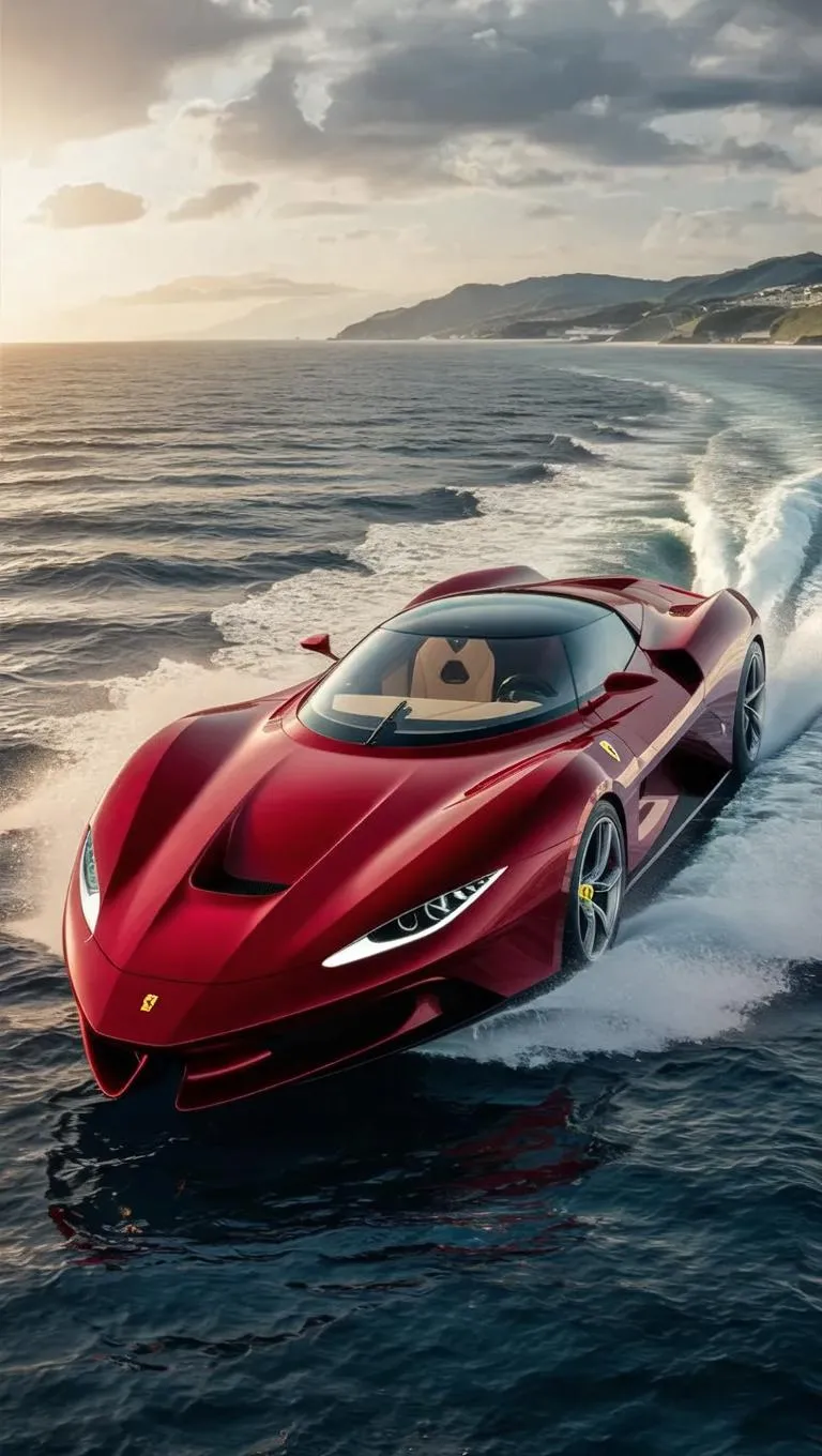 Create stunning AI-generated visuals of a red Ferrari-inspired futuristic concept yacht gliding along scenic coastlines. Explore cutting-edge AI tools to bring luxury automotive and yacht design visions to life with sleek, dynamic imagery. Elevate your creative projects with professional-grade results.