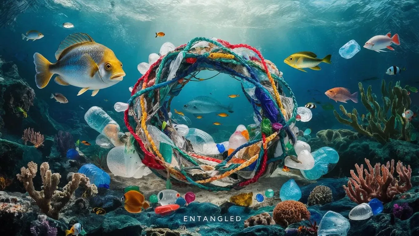 "Entangled" AI-generated artwork visualizes plastic pollution's impact on marine ecosystems. Crafted with Vivago.ai's AI art tools, this digital piece blends surreal visuals and eco-conscious messaging. Transform environmental prompts into striking ocean-themed art, merging AI creativity with urgent ecological themes for impactful digital storytelling.