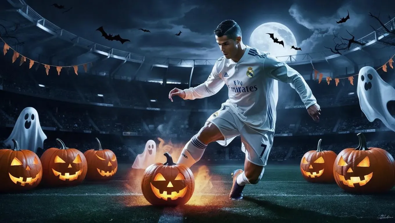 Create eerie AI-generated Halloween visuals of Cristiano Ronaldo with Vivago.ai. Transform text prompts into spooky football star edits, zombie-themed football scenes, or pumpkin-costumed CR7 art using advanced AI effects. Perfect for fans seeking hauntingly creative transformations of their favorite athlete this season.