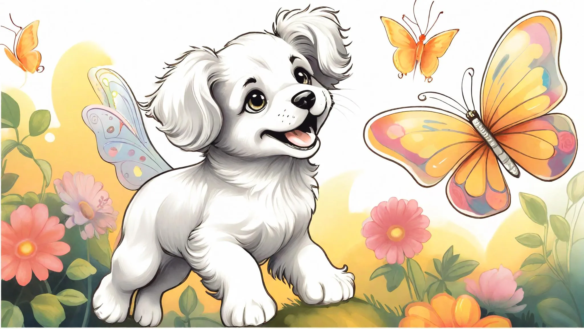 Generate a vibrant AI image of a playful puppy chasing colorful butterflies in a charming garden. Vivago.ai transforms text prompts into whimsical animal scenes with lifelike details, dynamic lighting, and joyful energy. Perfect for social media, pet brands, or creative projects needing cheerful, AI-generated visuals with professional-quality whitespace and playful antics.