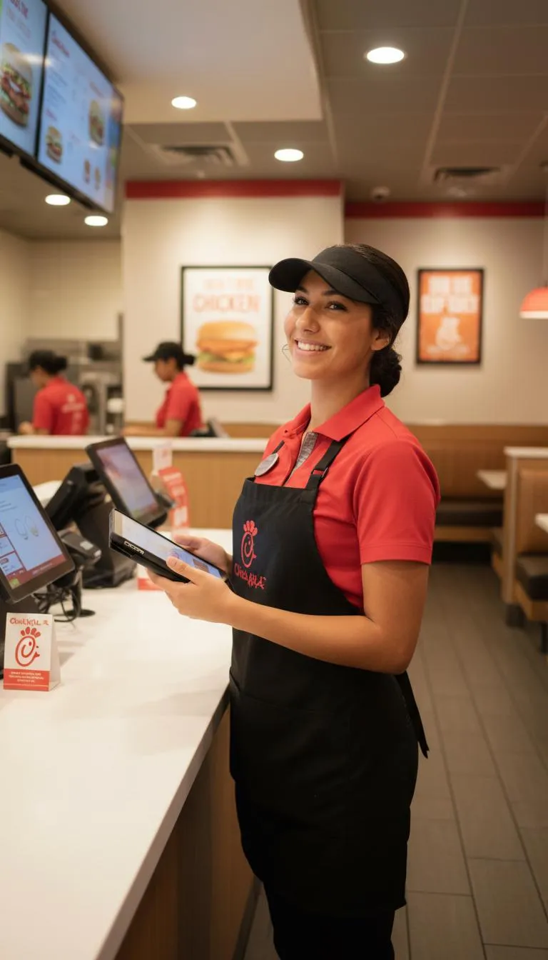 Transform your text prompt into a cute AI-generated picture of her taking your order at Chick-fil-A. Generate charming, custom artwork or digital visuals effortlessly with our AI image creator. Create fun, fast-food themed character scenes perfect for unique designs using text-to-image.