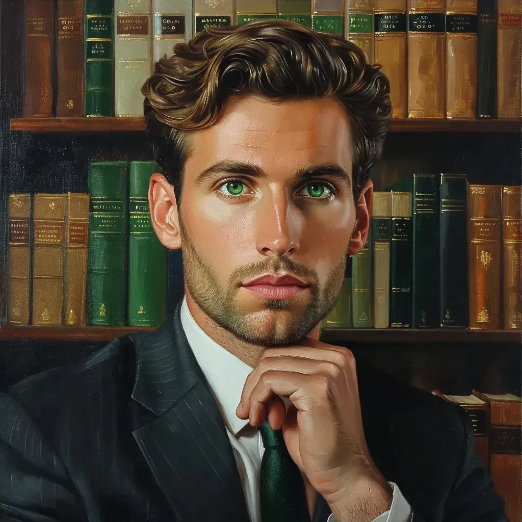 Generate a high-resolution AI image of a green-eyed lawyer-detective deep in thought within a modern office environment. Perfect for legal-themed visuals, mystery storytelling, or professional portfolios. Leverage AI-powered editing tools to enhance realism, refine details, and create compelling narratives through vivid, lifelike imagery.