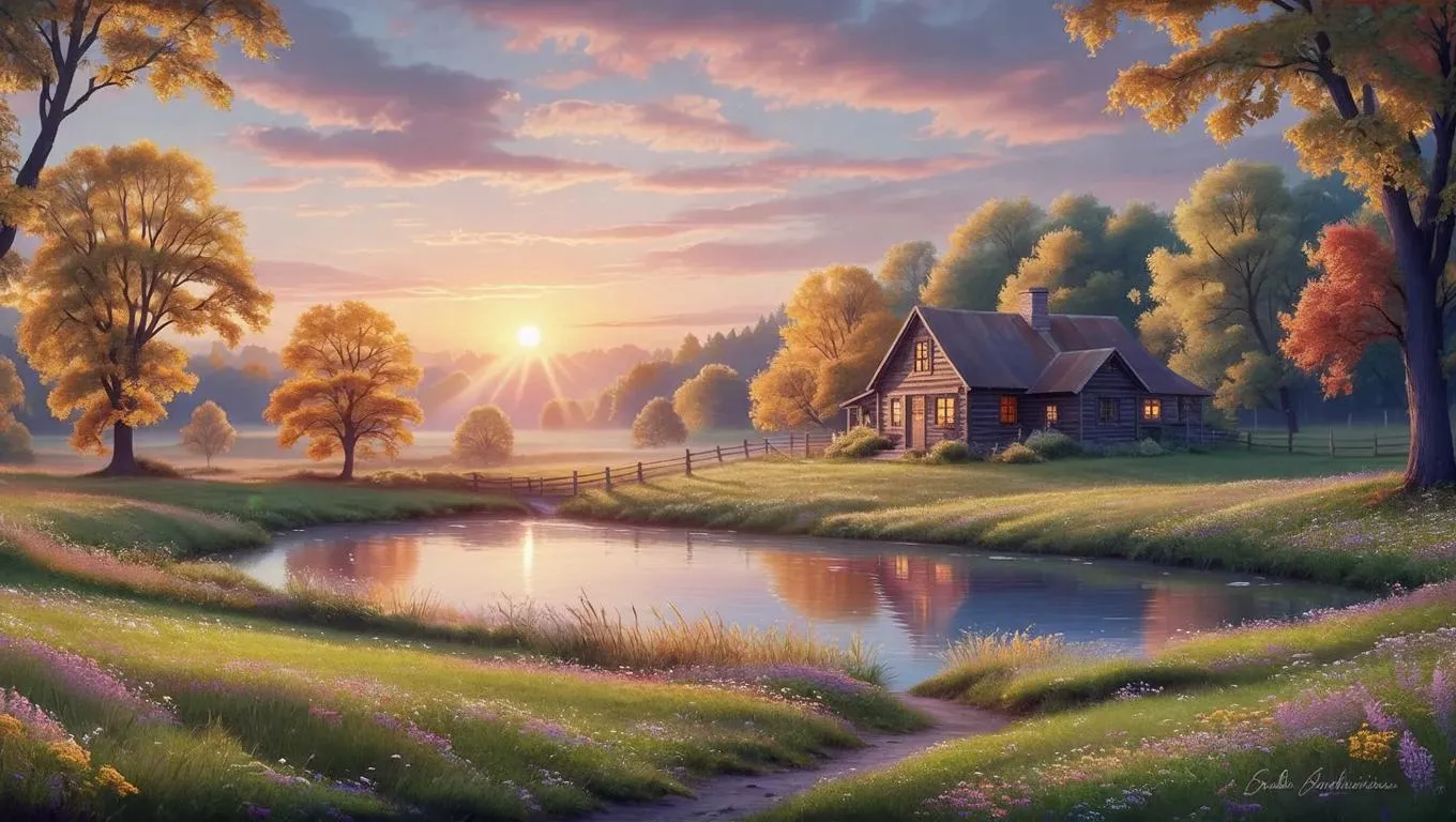 Vivago.ai crafts AI-generated countryside sunrise scenes with vibrant fall foliage, rustic villages, and tranquil ponds. Transform text prompts into serene landscapes featuring golden hues, dew-kissed grass, and dappled light. Elevate visuals with AI effects for mirror-like waters, dramatic shadows, and authentic rural charm. Perfect for immersive nature-inspired art, blending peace, authenticity, and vivid autumn tones effortlessly.