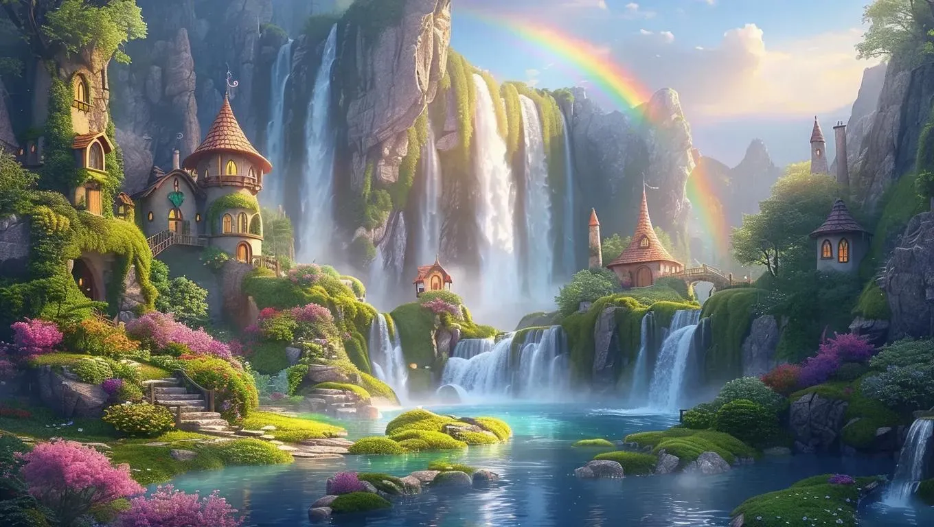 Create AI-generated fairy tale waterfall scenes with sparkling cascades, mystical elf houses, and lush cliffs. VivaGo.ai transforms prompts into vivid visuals featuring misty rainbows, moss-covered cottages, and stone paths. Craft serene yet powerful landscapes blending nature's grandeur with magical details. Perfect for fantasy art, world-building, and immersive storytelling. Explore AI effects for professional-grade fairy tale style imagery.