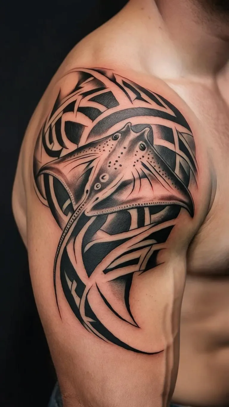 Create bold tribal stingray tattoo designs with vivago.ai’s AI tools. Transform text prompts into Polynesian-inspired stingray art, blending cultural motifs with modern AI effects for striking body art. Generate unique, symbolic tattoos with precision and creativity effortlessly.