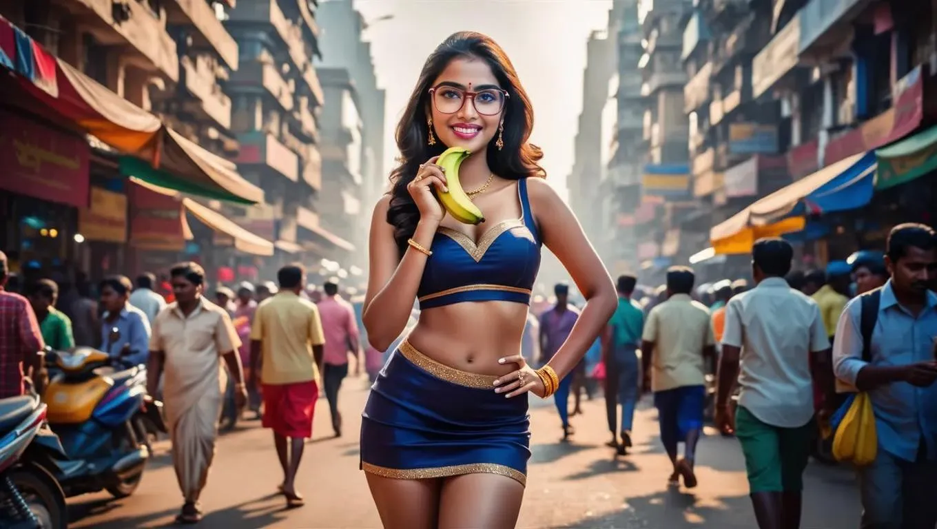 Generate vibrant AI visuals of a radiant Bengali woman in a bustling cityscape with vivago.ai. Transform prompts into stunning images featuring sun-kissed glow, chic mini skirts, expressive glasses, and dynamic urban backdrops for captivating, professional-grade AI-generated content.