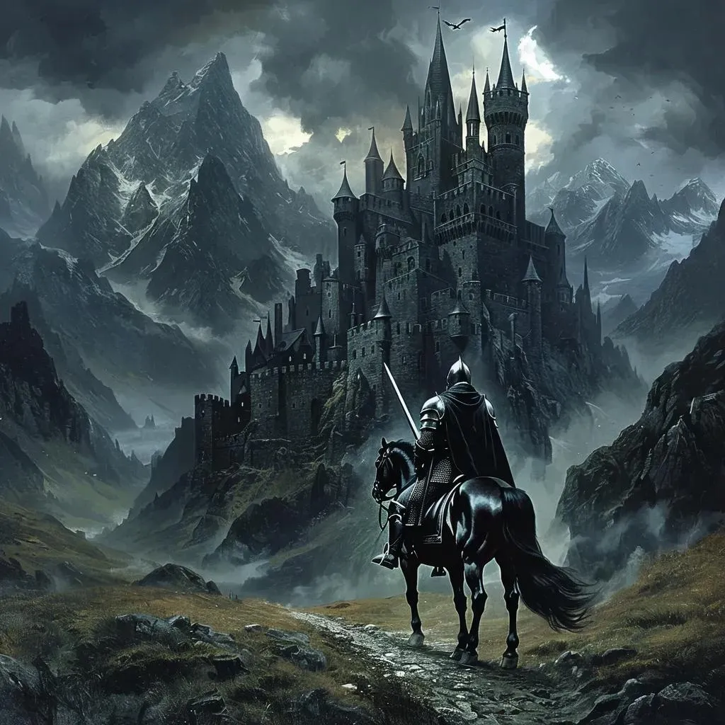 Create a dark fantasy art masterpiece with vivago.ai's AI image generator. Transform your text prompt into eerie landscapes: shadowy mountains, a haunting black castle, and a mysterious knight on horseback. Craft atmospheric, gothic visuals with professional AI tools for immersive dark fantasy scenes, perfect for storytelling, gaming, or concept art. Elevate your creativity with precision AI effects and editing.