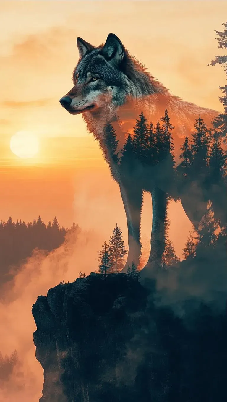 Transform your vision into surreal art with Vivago.ai's AI image generator. Craft a majestic wolf on a cliff at sunset using dreamy double exposure effects, blending misty forests within its silhouette. Add depth with oil brushstrokes, cinematic lighting, and ethereal atmospheres. Create professional-grade, imaginative visuals effortlessly.