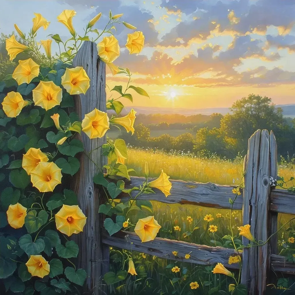 Effortlessly generate vibrant AI images of yellow morning glories blooming on a garden fence with vivago.ai. Transform text prompts into stunning visual art using curated AI effect tools for professional-grade creative projects.