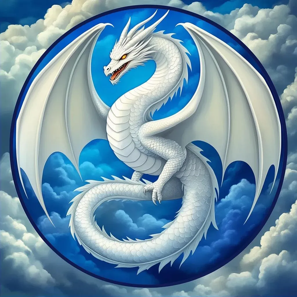 Create a striking AI-generated logo with a majestic white dragon spreading its wings atop a vibrant blue circle. Perfect for branding, gaming, or fantasy themes. Elevate your visuals using VivaGo AI's image tools for sleek, professional designs. Ideal for logos, merch, or digital art projects.