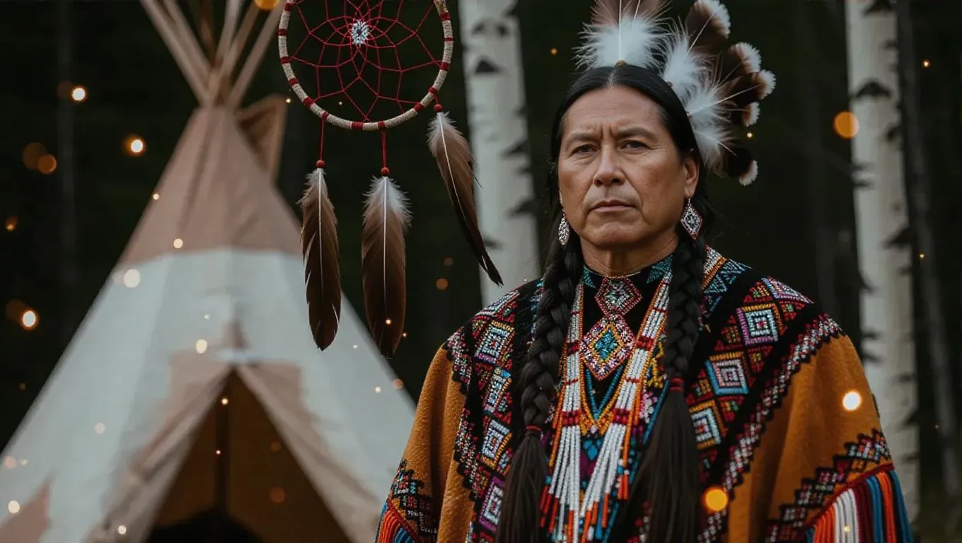 Create vibrant AI-generated Native American cultural imagery with detailed traditional attire, embroidered poncho, teepee, birch forest backdrop, and mystical dreamcatcher. Vivago.ai blends AI artistry, magical sparkles, and cultural motifs for striking visuals—perfect for storytelling, design, or heritage-inspired projects.