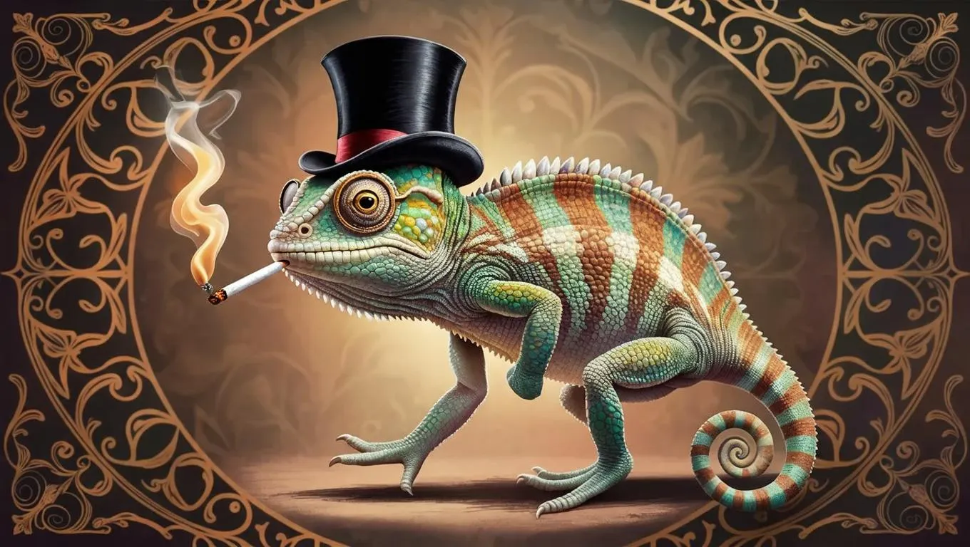 Transform text into 19th-century-inspired AI art with vivago.ai. Generate vintage chameleon drawings with whimsical details like a cigarette, blending historical aesthetics and creativity. Elevate prompts into professional visuals using AI effects for steampunk charm, intricate linework, and retro flair. Craft unique, eye-catching illustrations effortlessly.