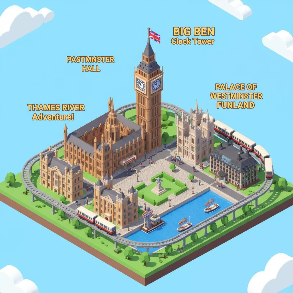 Use this location as a landmark, set it as an isometric image (buildings only), in the style of a game theme park.