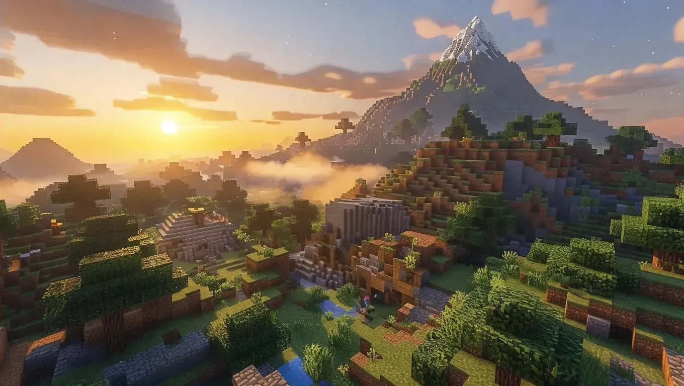 Explore a Minecraft-inspired AI-generated landscape with blocky terrains, glowing sunsets, towering oaks, and intricate stone villages. Dive into misty mountains and bustling creativity using vivago.ai’s tools for pixel-perfect AI art, video, and effects—ideal for gamers, builders, and creators seeking limitless adventure in a digital world. Optimize visuals with professional AI editing.