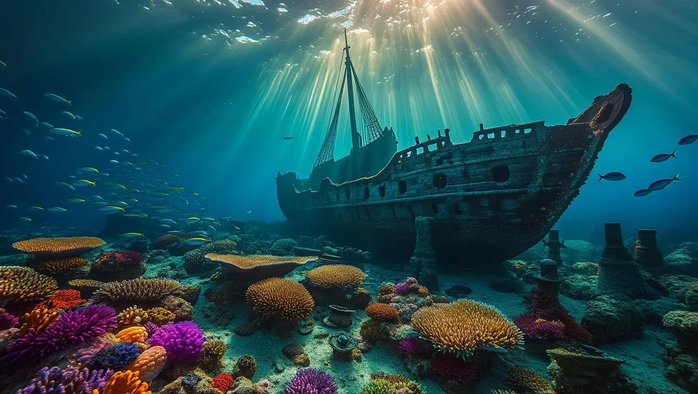 Generate eerie, haunting AI visuals of sunken pirate ship wreckage submerged in deep ocean depths. Explore coral-encrusted treasures, broken masts, and ghostly marine life with vivago.ai’s advanced image tools for realistic underwater scenes. Perfect for dark fantasy art, game assets, or cinematic storytelling.