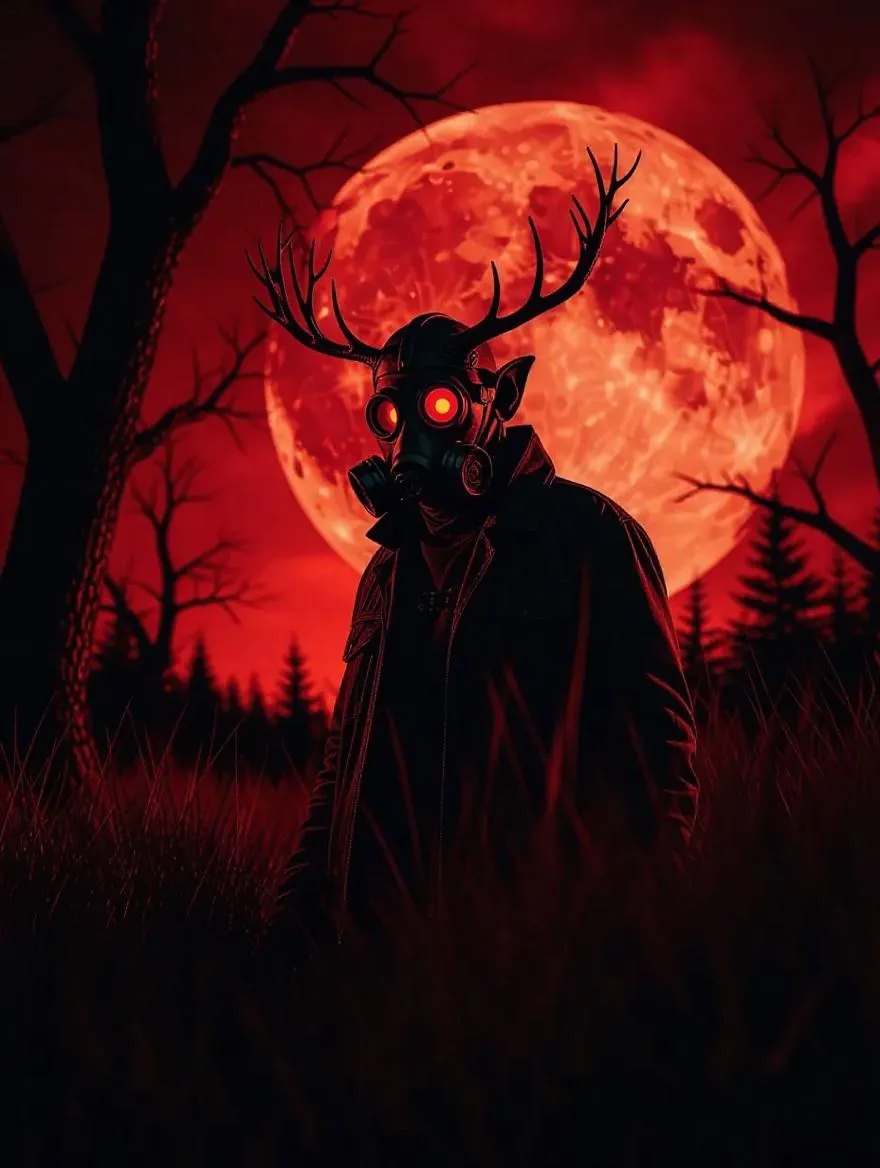 Craft eerie horror landscapes with AI: Generate realistic gas mask scenes, dark silhouettes, and eldritch abominations under a blood-red moon. Use Vivago.ai's AI image tools to blend haunting elements like antlered figures, twisted trees, and post-apocalyptic grass. Perfect for horror-themed visuals with professional-grade editing and curated effects. Transform your concepts into haunting, male-focused supernatural scenes effortlessly.
