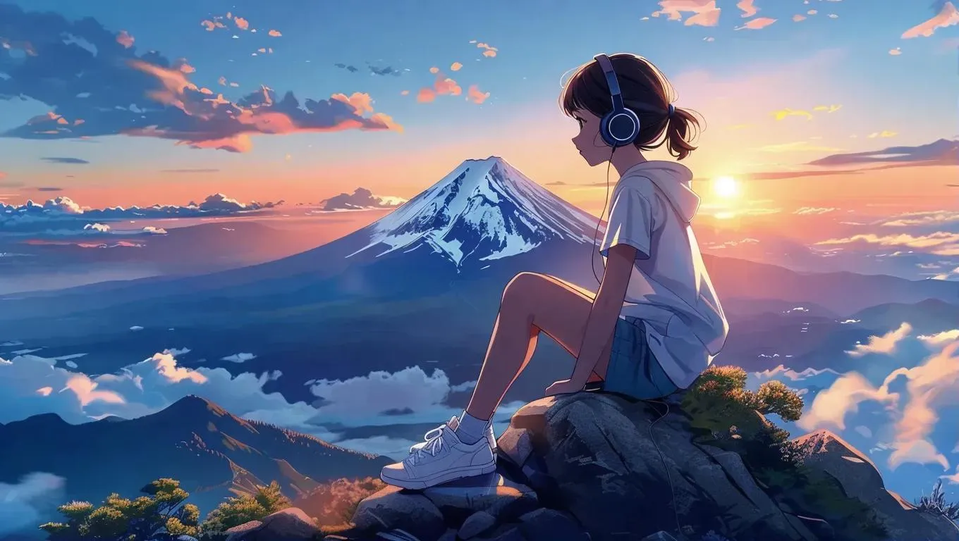 Generate a serene manga girl concentrating amidst mountain scenery with Chill Hop Latin Lofi vibes. AI-powered visuals blend anime aesthetics, focus-enhancing beats, and tranquil nature backdrops for creative inspiration. Perfect fusion of relaxing music and captivating art for productivity-driven storytelling.
