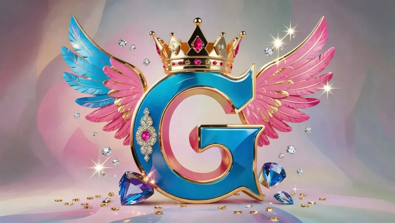 Create AI-generated whimsical designs with this vibrant 3D letter Ganesh illustration featuring a golden crown, large wings, and sparkling gems in blue, pink, and gold tones. Transform text prompts into regal visuals using Vivago.ai's creative tools for professional-grade, ethereal backdrops.