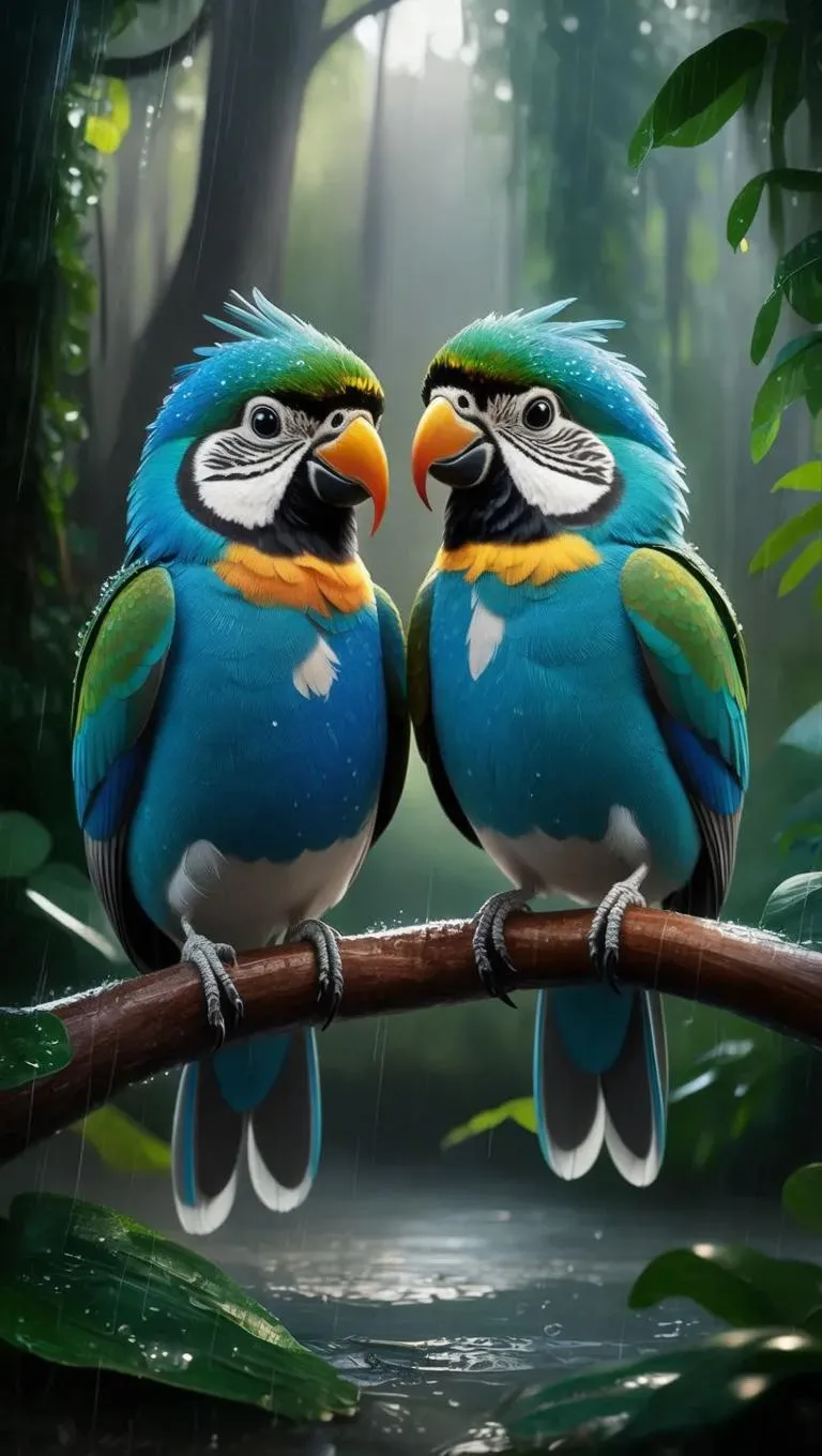 Create stunning AI-generated 3D birds with realistic azure plumage in a vibrant rainforest scene. VivaGo AI crafts lifelike avian couples from your prompts, offering front-view perspective and vivid details for professional-grade visual content. Transform ideas into breathtaking 3D art effortlessly.