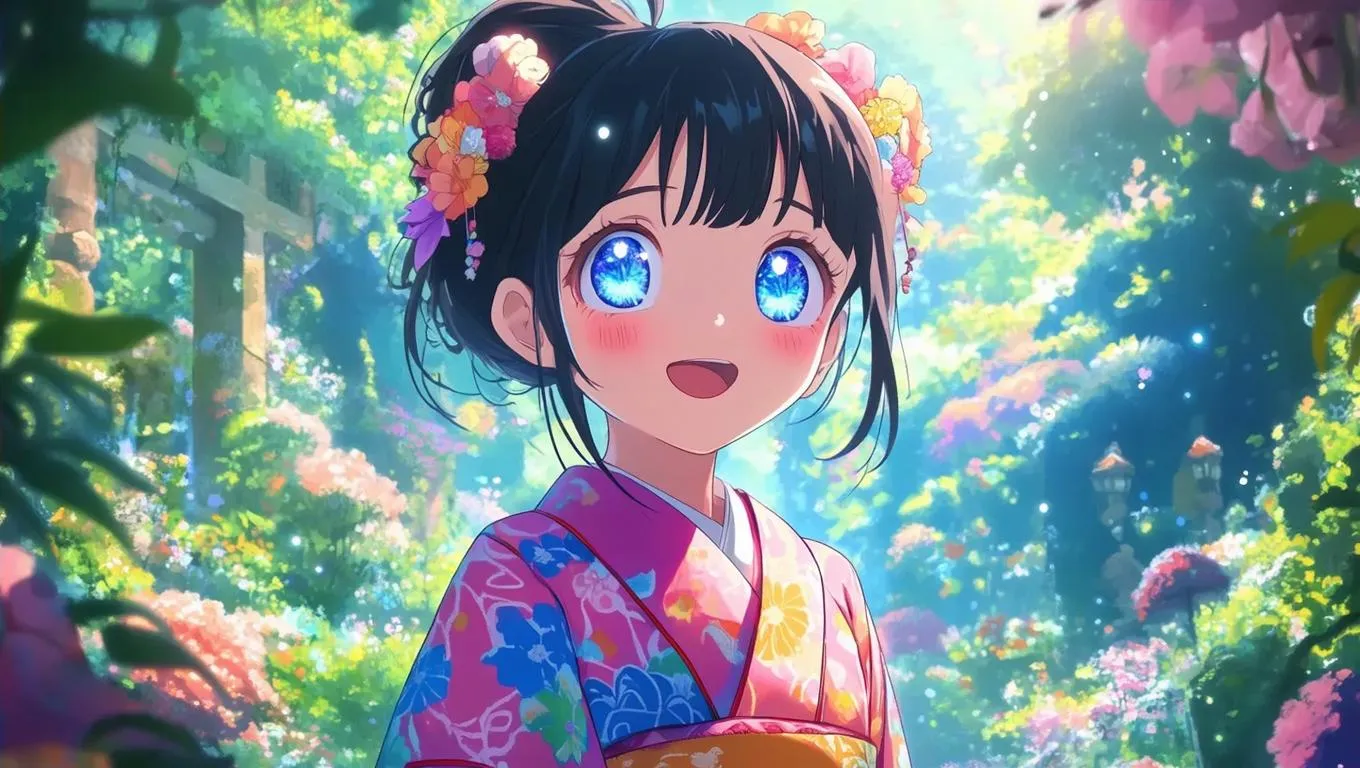 Create enchanting anime-style AI artwork with vivago.ai! Generate vibrant scenes of a joyful girl in a colorful kimono, oversized sparkling eyes, and a magical garden with pastel hues. Perfect for anime lovers, this AI image tool transforms prompts into professional illustrations brimming with wonder and whimsy.
