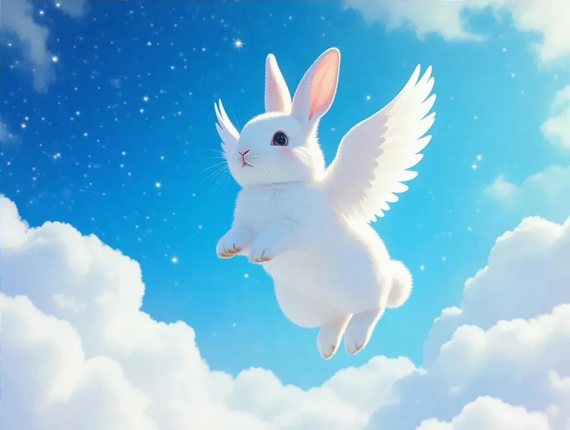 Generate an adorable kawaii rabbit with fluffy wings floating above clouds using Vivago.ai's AI image generator. Turn imaginative prompts into magical fantasy art with curated AI effects. Ideal for anime projects, children's illustrations, or whimsical digital creations. Create professional-grade cute visuals effortlessly.