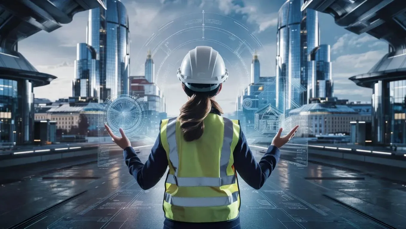 Generate AI-powered futuristic Helsinki scenes featuring safety-focused professionals. Create vivid images of women in high-vis vests and white helmets overseeing advanced urban projects with vivago.ai's intelligent visual tools. Perfect for conceptualizing next-gen construction sites, smart city development, and tech-enhanced workplace safety scenarios through text-to-image AI generation.