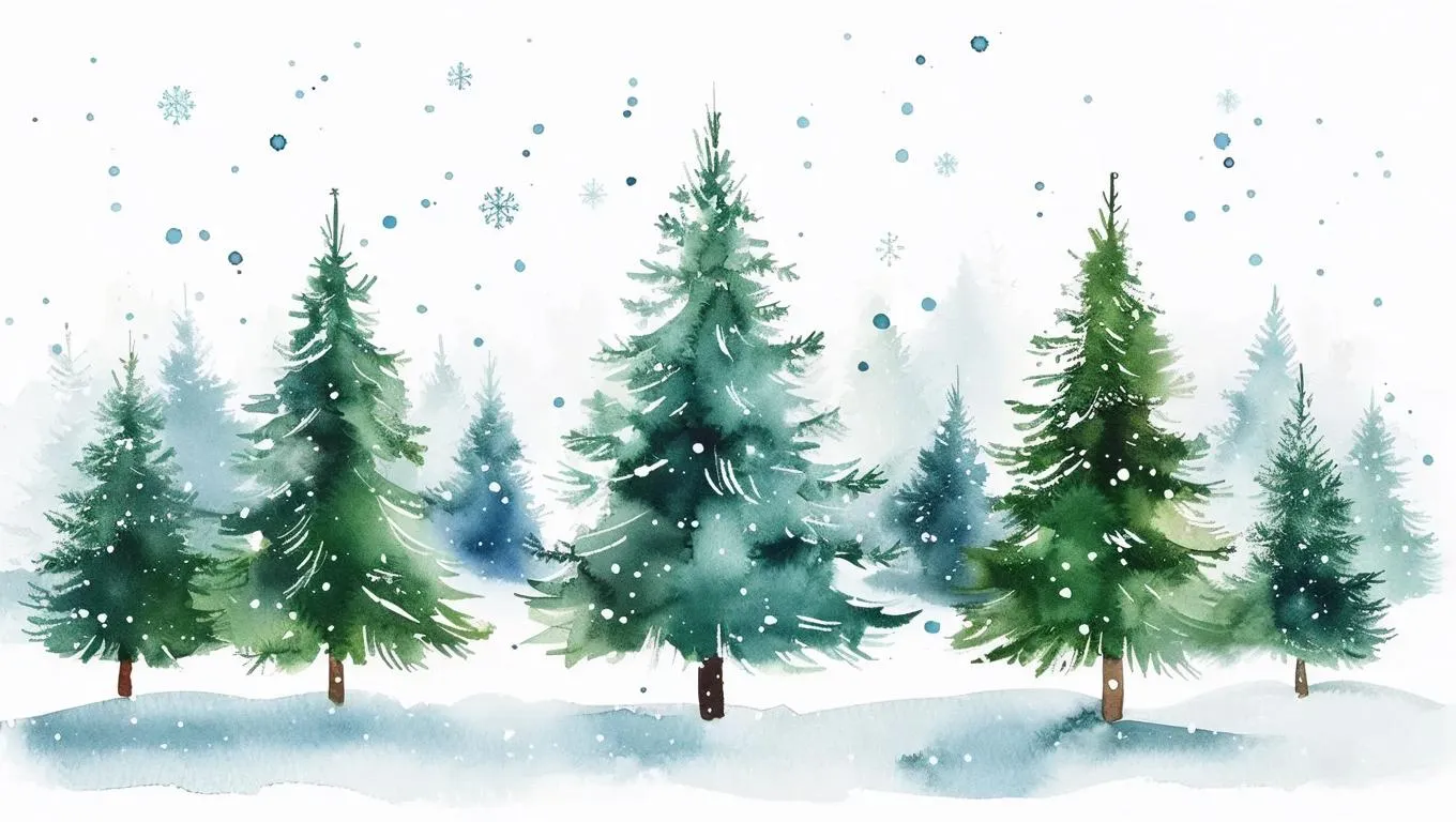 Generate a serene AI watercolor scene with three snowy Christmas trees and falling snowflakes on a white background. Perfect for festive cards, holiday designs, or winter-themed social media. Explore vivago.ai's AI image tools to create minimalist, elegant art with professional-grade effects and seasonal charm.