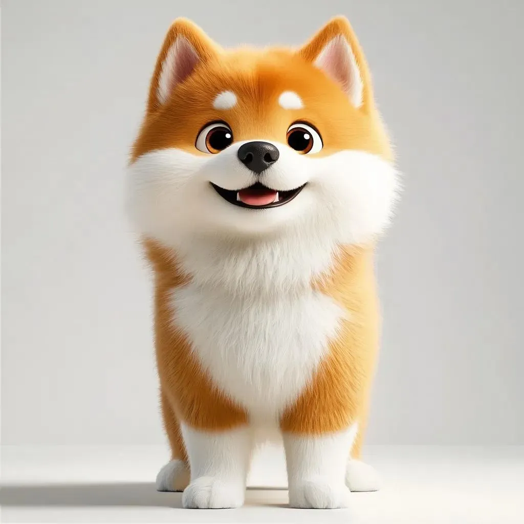 Create a hyperrealistic AI-generated portrait of Hachiko, a charming Akita with fluffy fur, expressive eyes, and purple hair. Featuring furry texture, studio lighting, and eco-friendly style for professional-grade, adorable pet imagery.