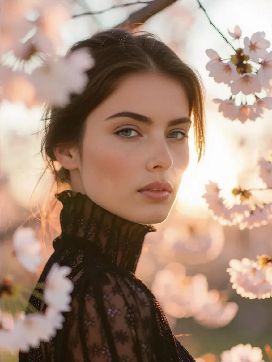 Create hyper-realistic AI fashion editorial photography with cinematic sepia tones, golden hour warmth, and Paolo Roversi-inspired lighting. Generate avant-garde compositions featuring dramatic silhouettes against cherry blossom backdrops, professional rim lighting, haze effects, and ultra-sharp details. Perfect for designers seeking AI-powered editorial visuals with raw-format precision, grain textures, and rich color grading. Elevate creative projects with professional-grade AI effects.