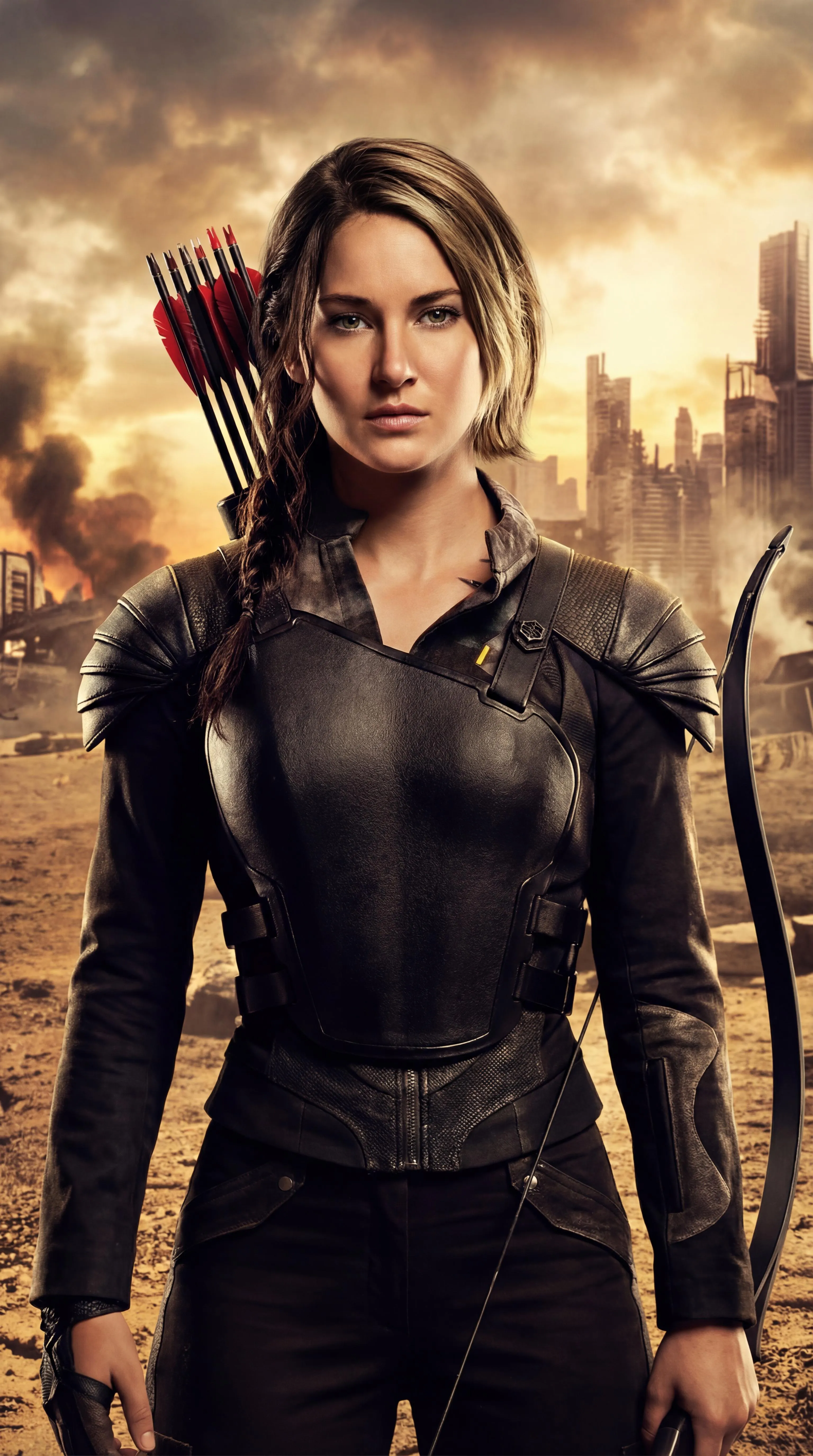 Katniss Everdeen (portrayed by Jennifer Lawrence) and Tris Prior (portrayed by Shailene Woodley) interchangeably combine into each other as one, facial and physical features alike.