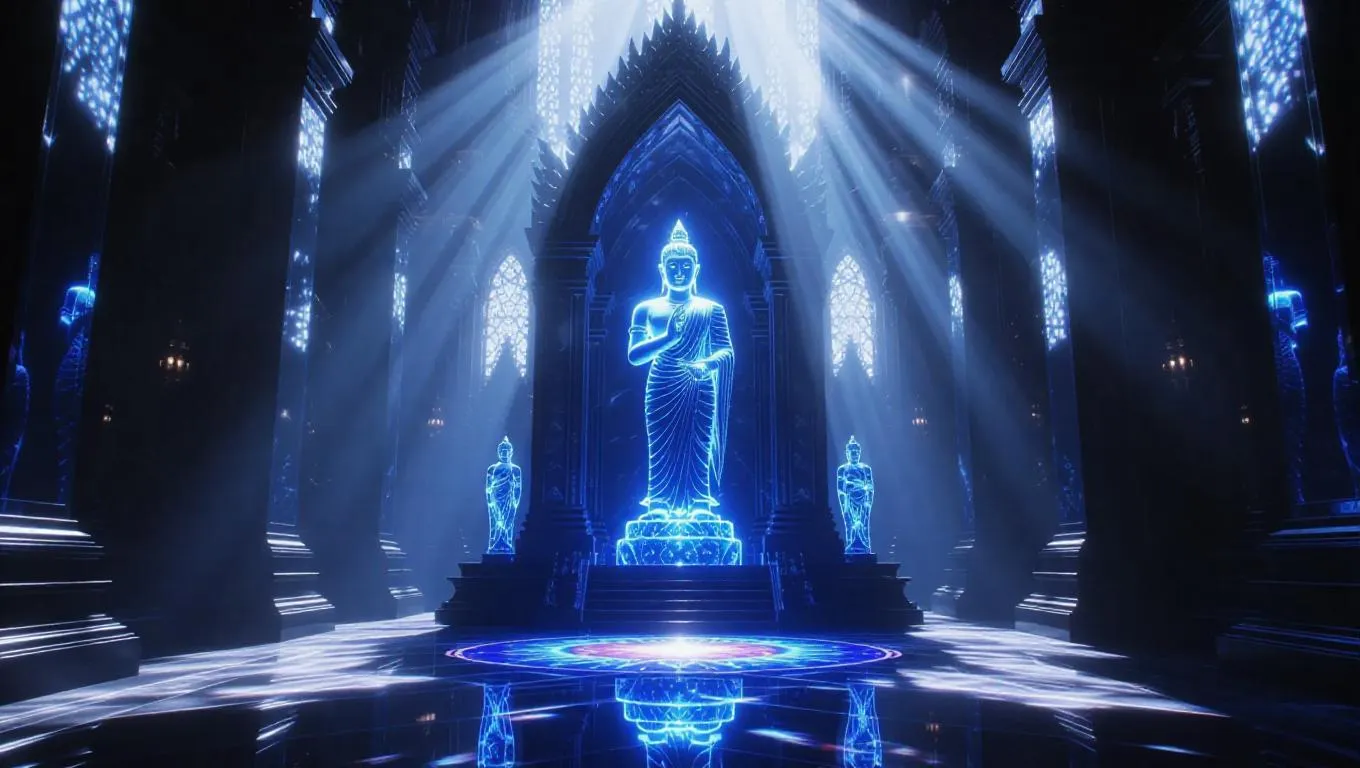 Explore a majestic Art Deco cathedral with a crystal temple, prismatic light effects, and kaleidoscopic colors. AI-generated visuals showcase ray casting, crystal textures, and ethereal luminosity. Mesmerizing light beams, intricate details, and awe-inspiring scale create transcendent, radiant imagery for professional AI art.