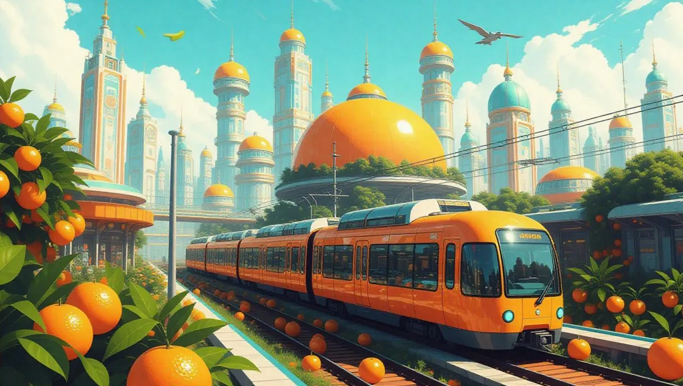 Explore an AI-generated futuristic citrus cityscape with orange skyscrapers, lemon-powered trams, and grapefruit domes. Vibrant pixel art meets watercolor anime visuals in minimalist abstract architecture, featuring sparkling lime rain. Hyper-refreshing aesthetic blends dreamy concept art with clean digital precision for immersive AI creativity.