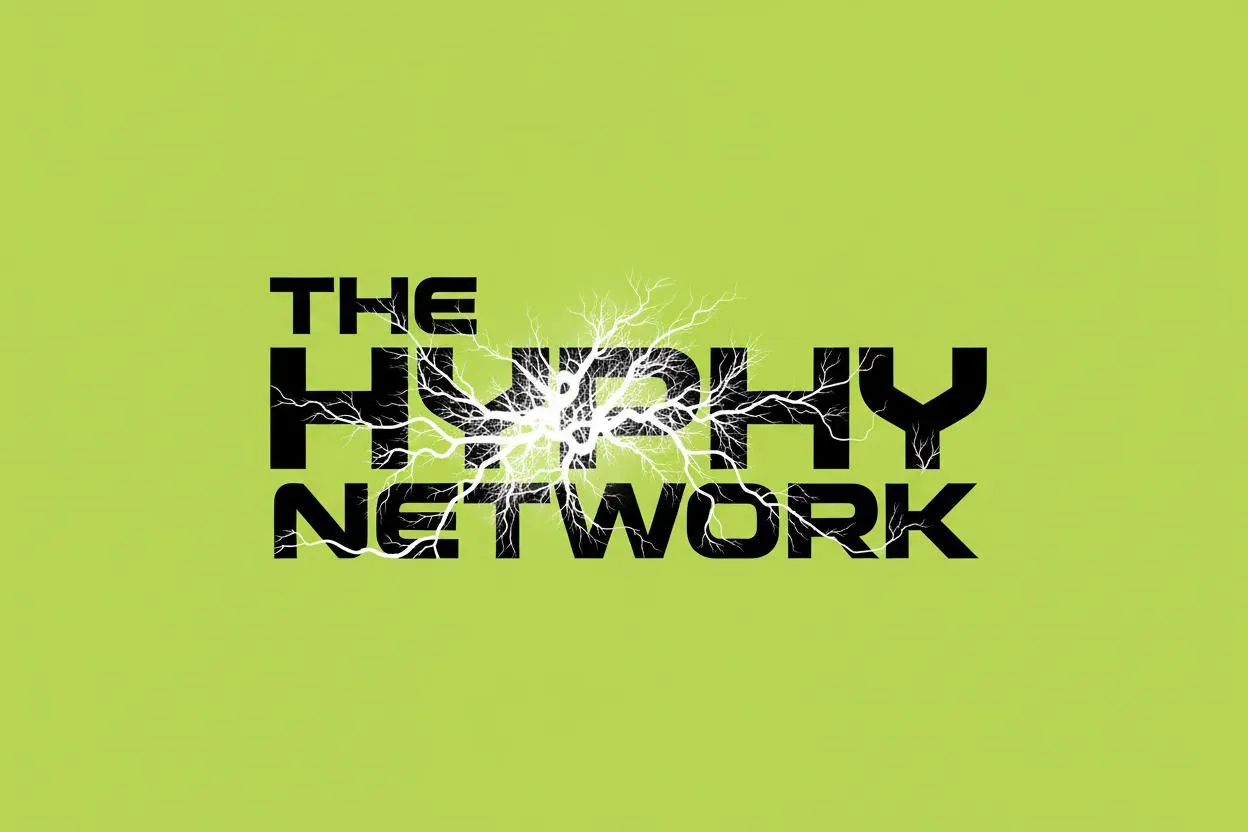 Generate a custom AI logo for "The Hyphy Network" with black text. Vivago.ai creates logos featuring white mycelial threads growing from the center 'y' outwards through the letters, all on a vibrant lime green background. Use text-to-image AI for unique, professional brand visuals.