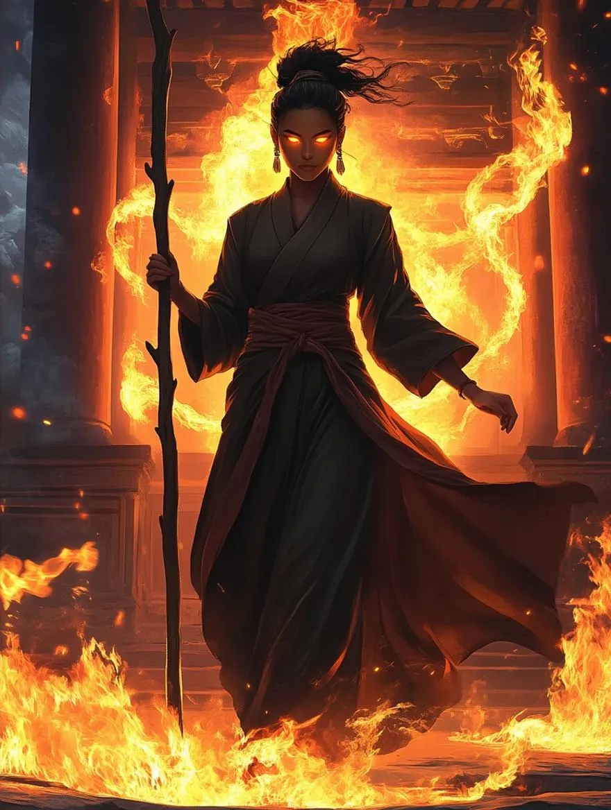 Ignite your creativity with AI-generated art of a Fire Genasi female monk wielding a staff. Explore vivid elemental character designs through text-to-image AI, crafting mystical warriors with fiery auras and monk robes. Perfect for fantasy art, D&D character concepts, or digital storytelling. Enhance your visuals with professional AI effects and editing tools for striking, imaginative results.